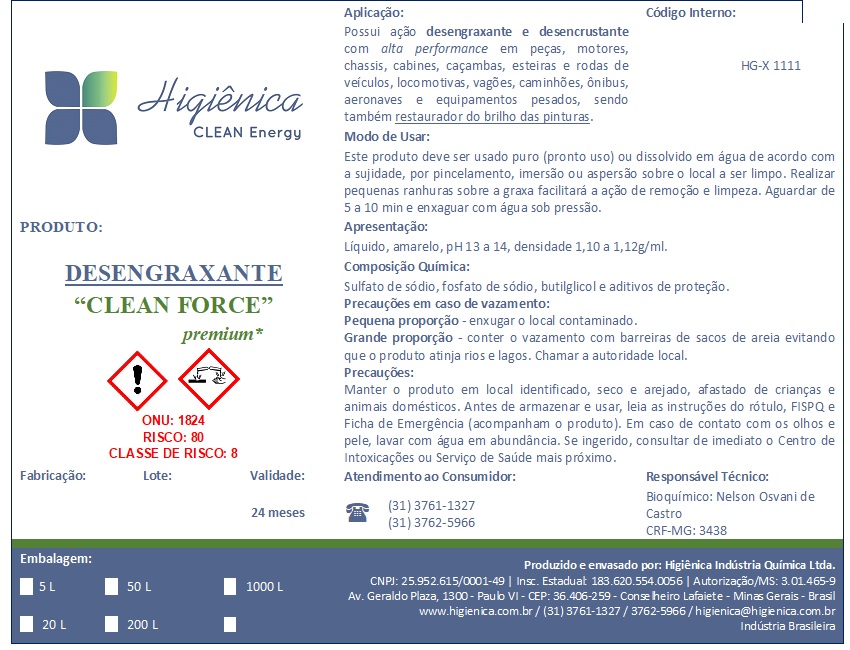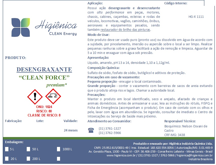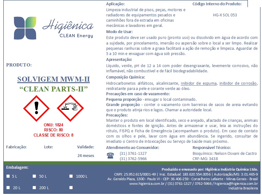 A Higiênica possui uma ampla variedade de produtos desengraxantes e desencrustantes, alcalinos / ácidos / neutros, com performances validadas no mercado nos últimos 30 anos pelas principais empresas dos seguintes segmentos: