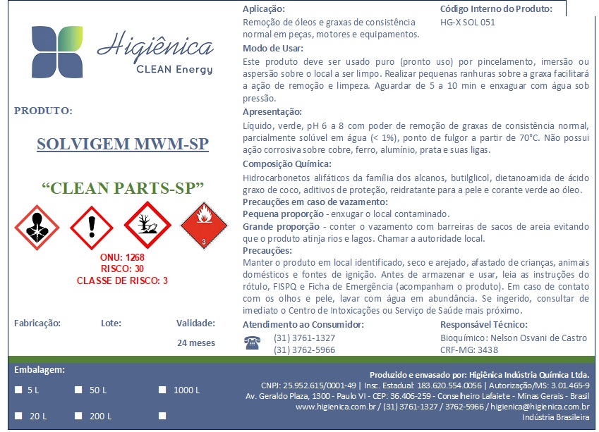 Higiênica possui uma ampla variedade de produtos solventes, com performances