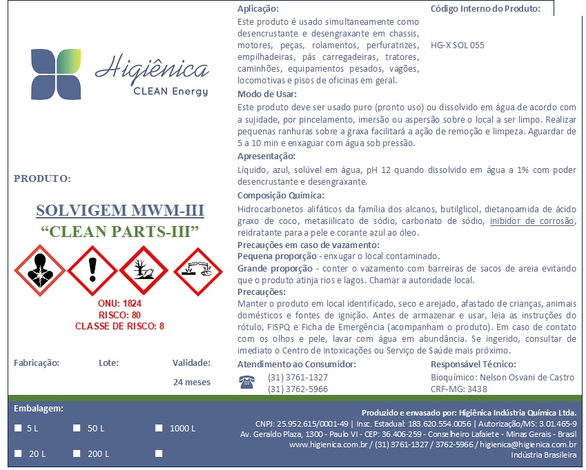 A Higiênica possui uma ampla variedade de produtos solventes, com performances validadas no mercado nos últimos 30 anos com atuação nos seguintes segmentos:
